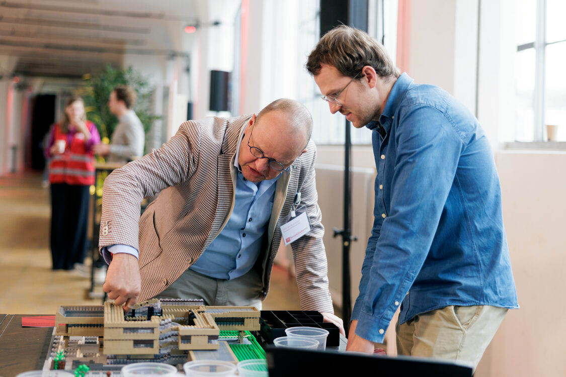 Onze ‘community builders’ kregen ieder een Lego-steentje waarmee ze actief meebouwden aan een maquette van het stadhuis Terneuzen. Een ontwerp van ons uit de jaren ’70 dat we nu mogen verduurzamen. Terwijl het festivalprogramma doorging, zorgde de ‘Legomaster’ ervoor dat alle losse steentjes samenkwamen tot een compleet model.