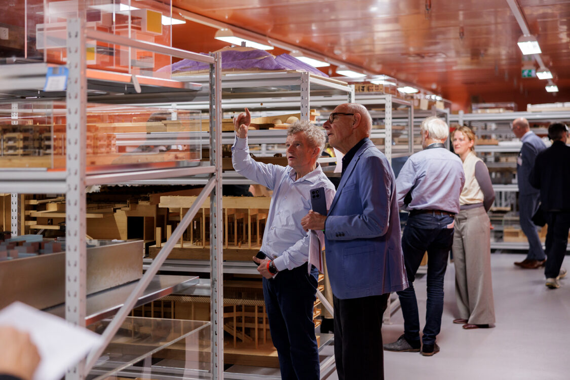Na de plenaire aftrap zetten we het programma voort in festivalsferen. Rondkijken, meedoen, ontdekken, alles kon. Van ‘speeddateschetsen’ (één keer in de honderd jaar gratis advies van een Broekbakema-architect!) tot een exclusief kijkje in het normaal niet publiek toegankelijk maquettedepot van het Nieuwe Instituut. Hier stonden speciaal voor vandaag iconische modellen opgesteld: van het Nederlands Paviljoen in Osaka tot de Van Nelle Fabriek zelf. Een reis door ons creatieve verleden.
