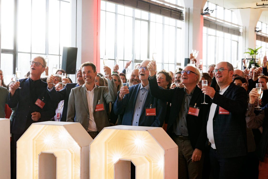 Honderd jaar geleden kregen wij de opdracht voor de Van Nelle Fabriek – tijd voor een feestje, aldus Aldo Vos aan het begin van onze jubileumviering. We hebben een lange traditie van maatschappelijke vernieuwing en daar zijn we trots op. Maar hoe vier je zoiets bijzonders? Met inspirerende woorden, een flinke dosis creativiteit en natuurlijk… een feest in diezelfde Van Nelle Fabriek. Dé plek waar een groot deel van onze geschiedenis ligt.